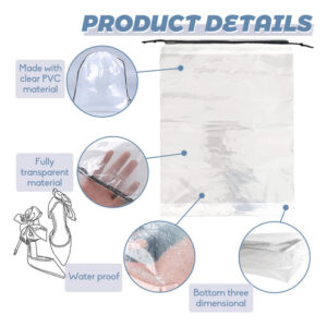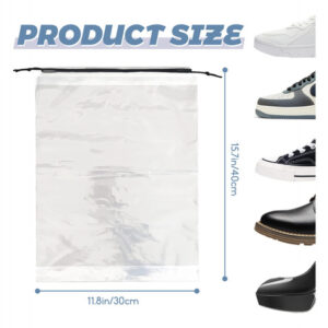 – Design de alça transparente: o desenho O design de alça de cordão torna esta bolsa de plástico portátil para sapatos fácil de abrir ou fechar e mantém os itens seguros. Você também pode usar o cordão para pendurar itens para economizar espaço de armazenamento.