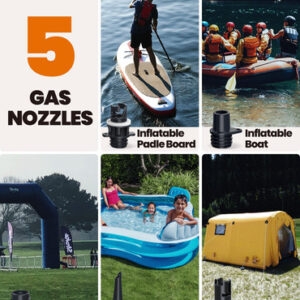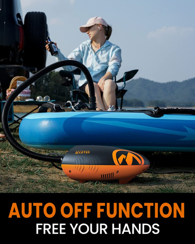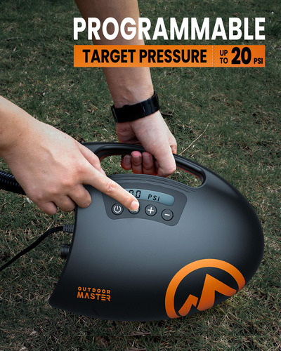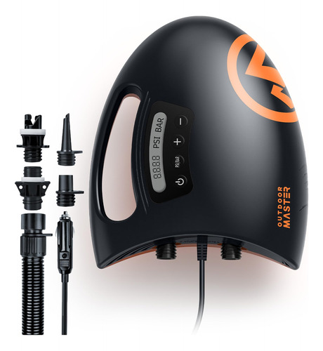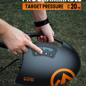 Bomba SUP de alta pressão OutdoorMaster Shark – Bomba de ar elétrica com sistema de resfriamento ativo de 20 PSI, inflação de dois estágios e desligamento automático para pranchas infláveis, barcos e esportes aquáticos – 2ª geração – SISTEMA DE RESFRIAMENTO ATIVO – A única bomba de ar elétrica SUP com sistema de resfriamento ativo de até 20 PSI PARA 3 PRANCHAS CONSECUTIVAS – Desfrute de uma bomba de prancha de remo de design elegante com inflação rápida e de alta pressão e sistema de resfriamento consistente – Feito para compartilhar! – ESTÁGIO DUPLO RÁPIDO E PODEROSO E DESLIGAMENTO AUTOMÁTICO PARA FÁCIL INFLAÇÃO – Bomba automática de estágio duplo: 1º estágio para VELOCIDADE MÁXIMA de 350 L/min e 2º estágio para PRESSÃO MÁXIMA de 70 L/min. A FUNÇÃO DE DESLIGAMENTO AUTOMÁTICO desliga a bomba quando a pressão alvo é atingida ao inflar. – CONECTOR DE CARRO DE 12V DC E FUNÇÃO DE DEFLAÇÃO – Conecte-se ao conector de 12V DC do seu carro e a bomba da placa de remo funcionará. Possui fusível de 12A para maior segurança. A função de deflação pode garantir um esvaziamento rápido de seus insufláveis para um tamanho compacto, mais fácil de dobrar e armazenar! – DISPLAY DIGITAL COM MONITORAMENTO DE PRESSÃO EM TEMPO REAL – Use o display digital para definir a pressão desejada e monitorar a pressão em tempo real. BOMBEAR NUNCA FOI TÃO FÁCIL! – CONJUNTO COMPLETO DE ACESSÓRIOS DE BICOS – Vem com um conjunto completo de bicos para caber na maioria dos insufláveis de alta pressão, incluindo válvulas C7 e H3, como pranchas de remo infláveis, colchões de ar, caiaques, barcos, arcos, piscinas, tendas e assim por diante.