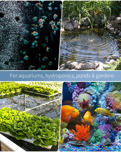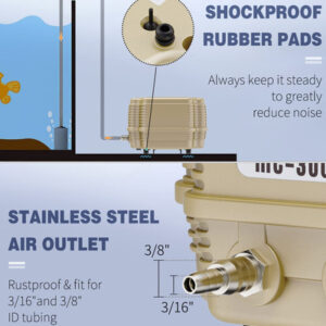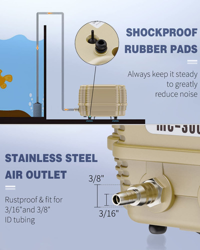 ultrassilenciosa Bomba de ar eficiente: Esta poderosa bomba de ar fornece fluxo de ar de 254 galões por hora para crescimento de hálito ou raiz de peixe com baixo consumo de energia de 7 W. Super silenciosa: a bomba garante uma operação extremamente silenciosa com construção de silenciador interno de vários níveis e 4 almofadas de borracha à prova de choque, reduzindo o ruído e mantendo-o estável. Fluxo de