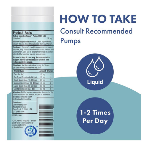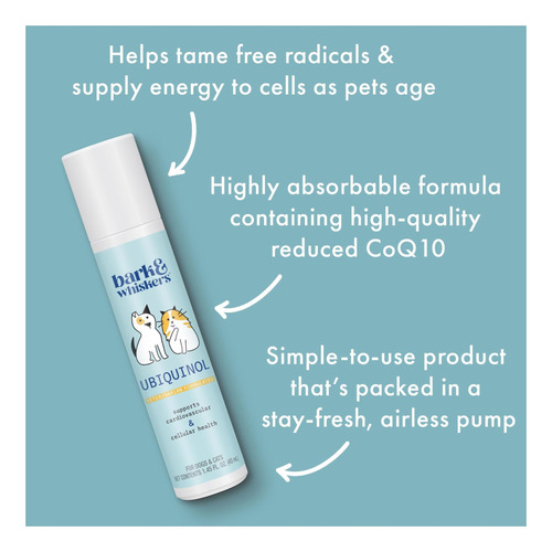 • Bombea líquida de casca e bigodes ubiquinol fornece ao seu animal de estimação o combustível e proteção celular que ele precisa para uma vida longa e saudável