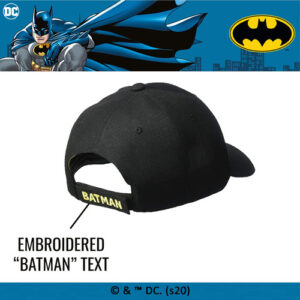 Boné de beisebol Batman da DC Comics, logotipo bordado, boné ajustável com aba curva, preto, tamanho único — Boné de beisebol BATMAN: boné de beisebol preto ajustável de poliéster com o icônico logotipo do Batman bordado na frente do chapéu — Tamanho único: o chapéu ajustável possui um fecho de velcro na parte traseira para facilitar o redimensionamento para um ajuste confortável e confortável em cabeças de todas as formas e tamanhos — Leve e confortável: A capa macia é composta de poliéster macio e durável para permitir conforto instantâneo quando usada e apresenta uma aba curva com costura para mantenha os raios UV do sol longe de seus olhos – LICENCIADO OFICIALMENTE: Este boné é um produto oficialmente licenciado pela DC Comics, garantindo que você receba um boné de beisebol de qualidade – SOMENTE LAVAR À MÃO: recomendado somente para lavar à mão, colocar na horizontal para secar, não passar a ferro