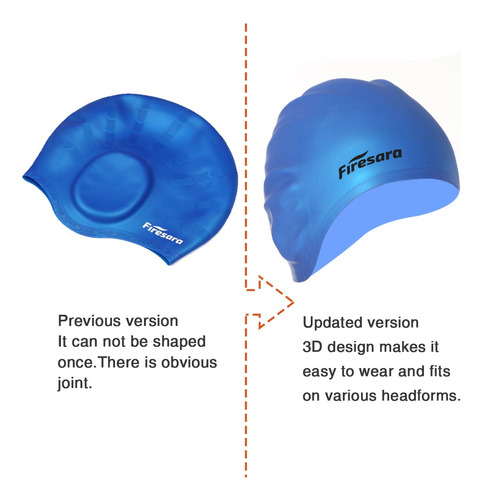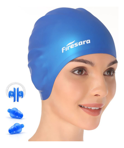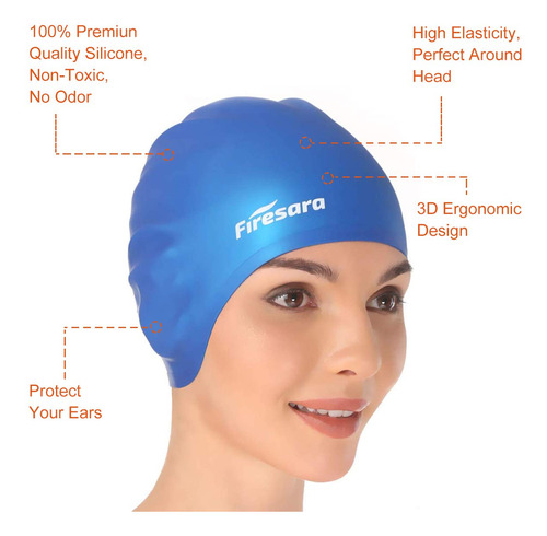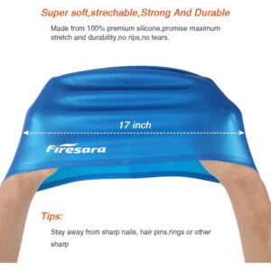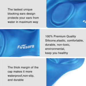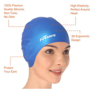 Swim Cap, Firesara Original Updated Swimming Cap 3D Ergonomic Design Comfortable Durable Ear Protection for Women Kids Adults Men Boys Girls for Long or short Hair with Nose Clip and Ear Plugs (Blue) – ORIGINAL 3D ERGONOMIC DESIGN-Our swim cap is shaped once according to the shape of a human skull. The 3D ergonomic design makes a more comfortable fit. It is easy and quick to take on and off while not snagging hair. Firesara swim cap for both recreational and competitive events from regular swimming to synchronized swimming, water polo etc. Come first in your swimming competition, as it increases your speed in water. – EAR PROTECTION, HIGH-QUALITY SILICONE-Professional ear protection design can give your ear futher protection and keep ear dry. Different to other swim caps, our swimming cap ismade from high-quality silicone. It is wrinkle-free, odorless and elastic. The thick margin of the cap makes it more durable and elastic. – PERFECT GIFT FOR SWIM ENTHUSIASTS-Our swim caps have professional nose clip and ear plugs sets. The extra nose clip and ear plugs will offer further protection for you. You wont have to think about overpressure or water getting into your ears or nose. A professional set with elegant package, it is a good choice to be a nice gift. – ONE SIZE FITS ALL-Our swim cap is suitable for various persons as kids, adults, men, women, boys, girls etc, because of its unique 3D ergonomic silicone design. The cap fits well, and is easy to keep the water out. – NOTE: To protect the swim cap form scratches or getting ripped, please keep it far away from fingernail, rings or other sharp objects.