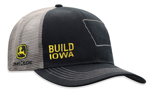 Officially licensed John Deere Trucker style Build cap in our traditional Gray and Black with Yellow Embroidery. The twill front and bill are black with gray contrast stitching on the bill. Features BUILD and your state name and outline embroidered on the front of the hat. Keep cool all summer long in this classic Deere mesh back and moisture wicking cap. The adjustable back strap makes resizing a snap! Makes a great gift for any occasion; Perfect for holidays, birthdays, and more. – Officially licensed John Deere Trucker style Build cap in our traditional Gray and Black with Yellow Embroidery – The twill front and bill are black with gray contrast stitching on the bill; Features BUILD and your state name and outline embroidered on the front of the hat – Keep cool all summer long in this classic Deere mesh back and moisture wicking cap; John Deere name and logo stitched on the side of the cap – The adjustable back strap makes resizing a snap – Makes a great gift for any occasion; Perfect for holidays, birthdays, and more