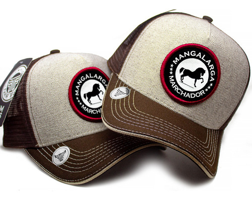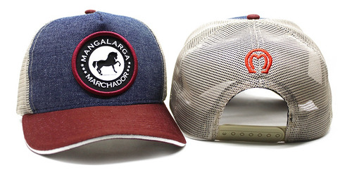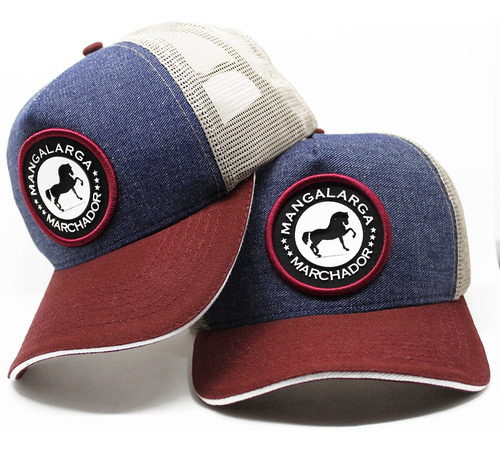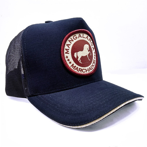 Modelo Trucker Americano, produzido em brim e microfibra, aplique na arte frontal, traseira bordada, espelho interno e viés, aba curva com 6 costuras, carneira soft, regulagem traseira em Snapback, parte traseira em telinha, bone adulto, atende do 50 ao 62, produto resistente, bonito, com excelente acabamento.