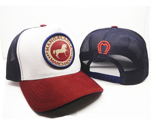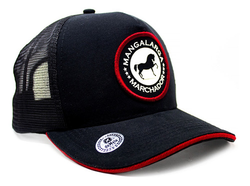 Modelo Trucker Americano, produzido em brim e microfibra, aplique na arte frontal, traseira bordada, espelho interno e viés, aba curva com 6 costuras, carneira soft, regulagem traseira em Snapback, parte traseira em telinha, bone adulto, atende do 50 ao 62, produto resistente, bonito, com excelente acabamento.