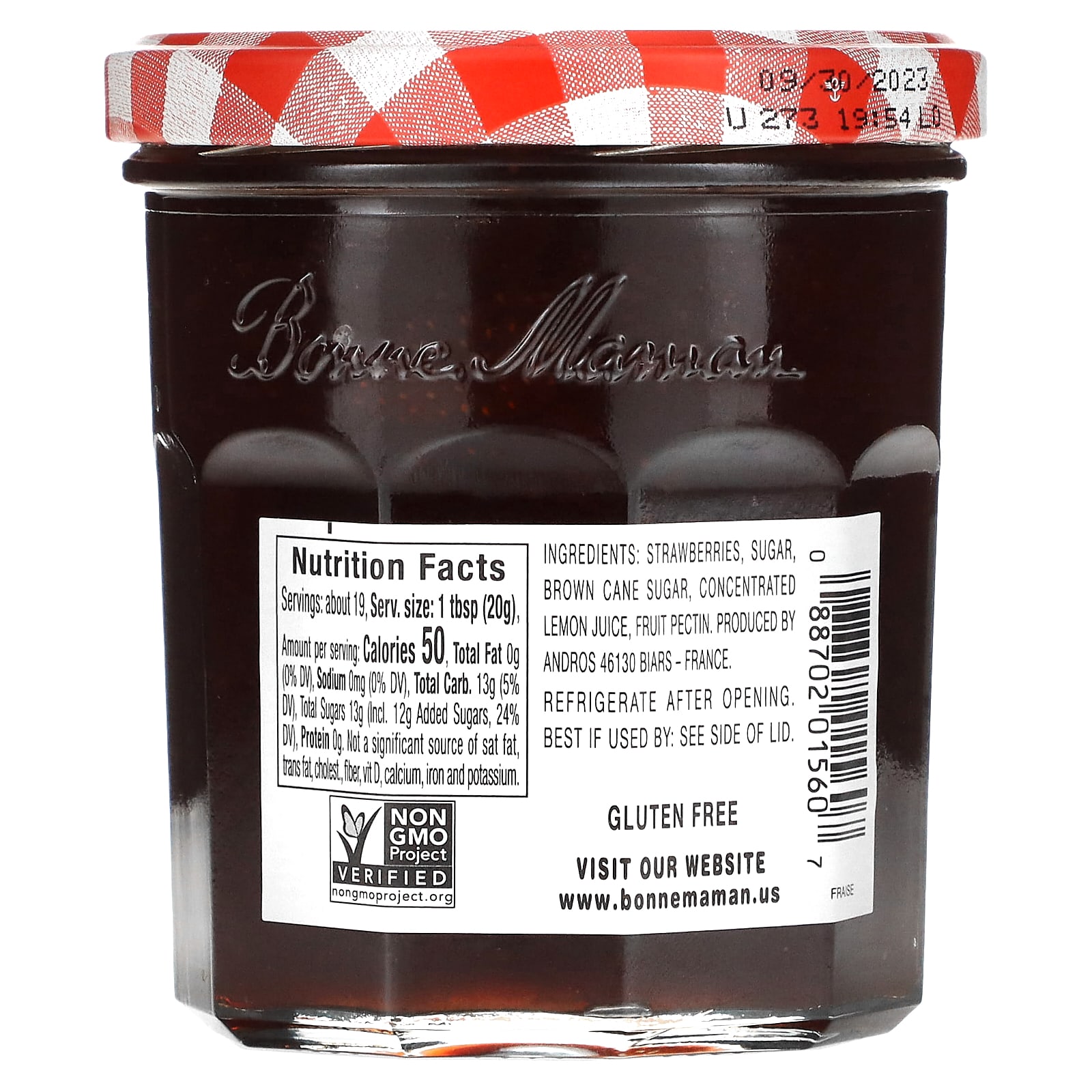 Cada pote de nossas conservas de morango apresenta uma abundância de nossas peças de fruta que são nossa marca registrada. A doce riqueza dos morangos cozidos cria uma textura perfeita e um sabor brilhante. Como todos os sabores Bonne Maman, ele é feito com ingredientes naturais, incluindo os morangos da mais alta qualidade disponíveis.