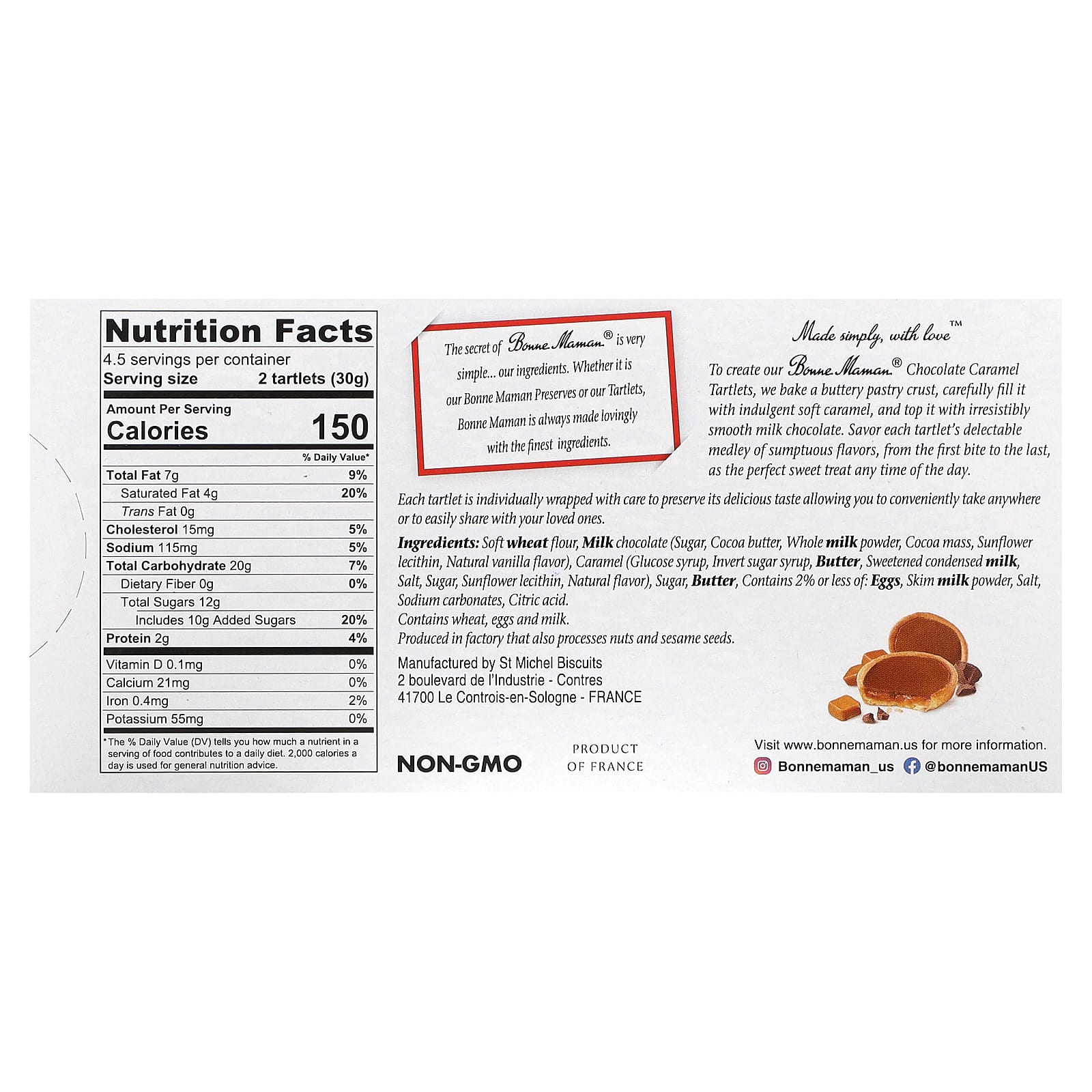 Bonne Maman Tortinhas Chocolate e Caramelo 9 Tortinhas 15 g (053 oz) Cada – Bonne Maman Alimentos Petiscos e lanches Cookies.