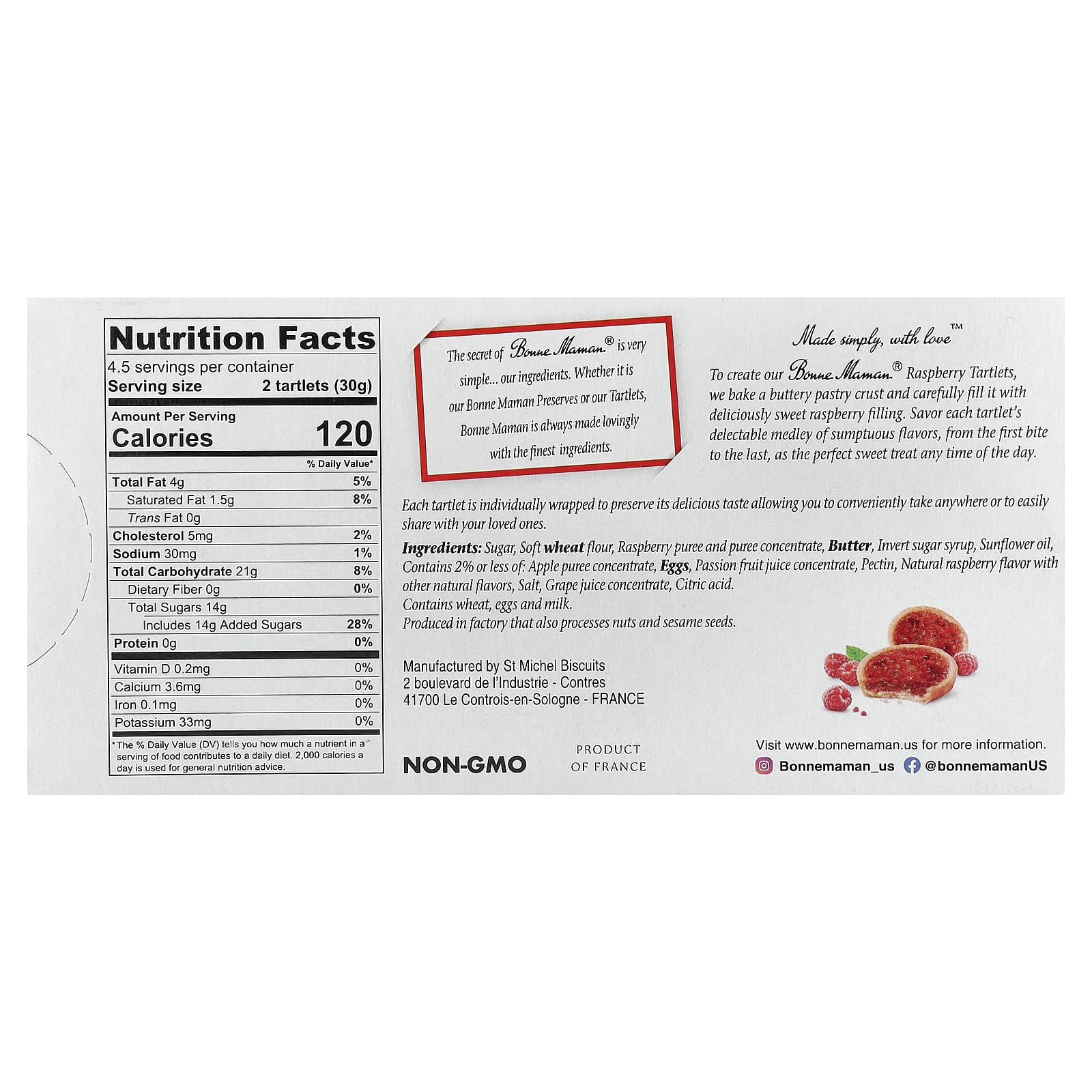 Bonne Maman Tortinhas Framboesa 9 Tortinhas 15 g (053 oz) Cada – Bonne Maman Alimentos Petiscos e lanches Cookies.