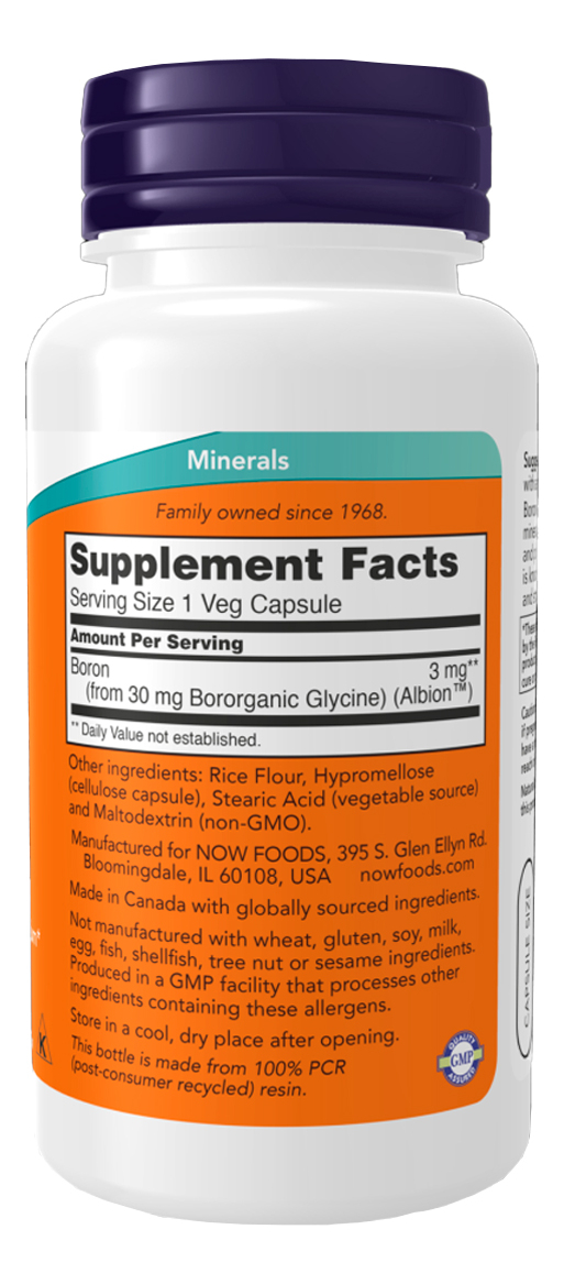 Boron 3mg Now Foods 100 Cápsulas Importado