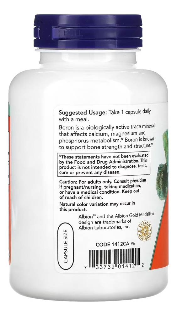 Boron 3mg NOW Foods 250 Veg Caps Produto Importado