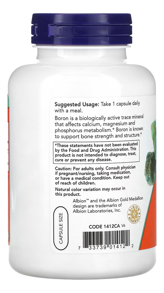 Boron 3mg NOW Foods 250 Veg Caps Produto Importado