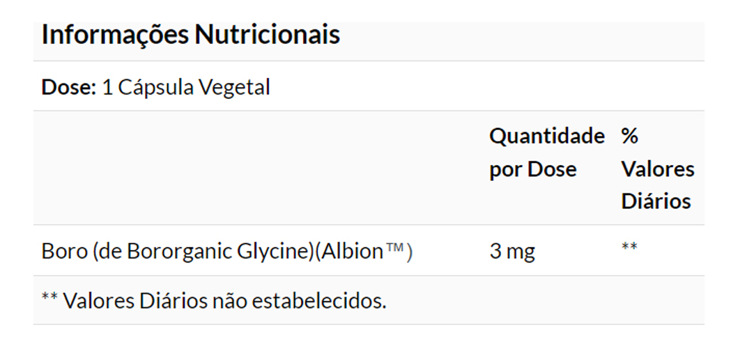5. Composição Detalhada: Cada cápsula contém 3mg de Boron, sem a adição de ingredientes desnecessários. Esta formulação cuidadosamente elaborada foca na pureza e eficácia, garantindo que você receba um suplemento de alta qualidade a cada ingestão. VALIDADE LONGA