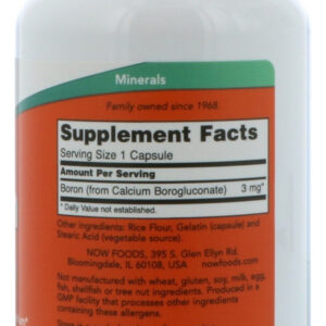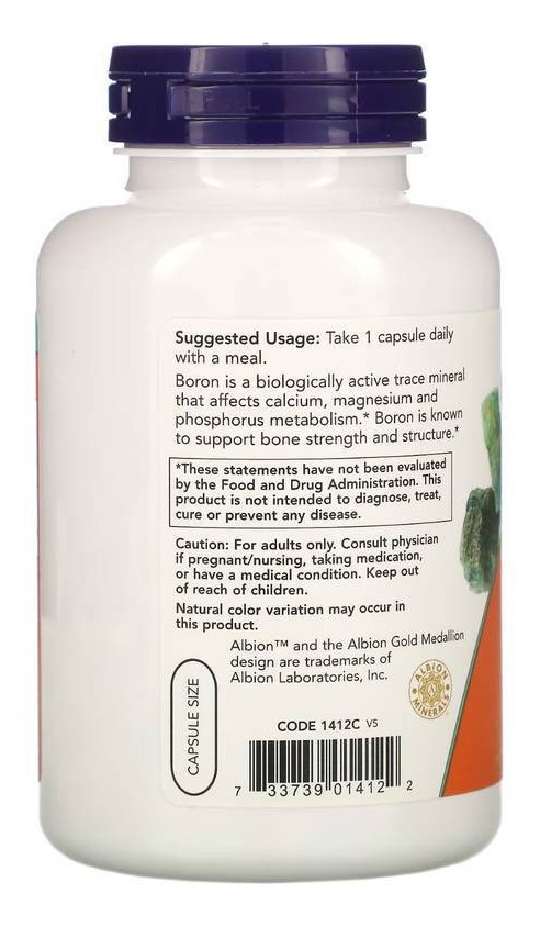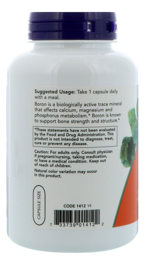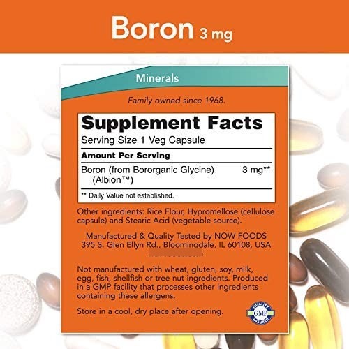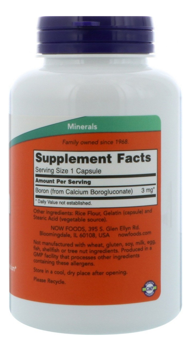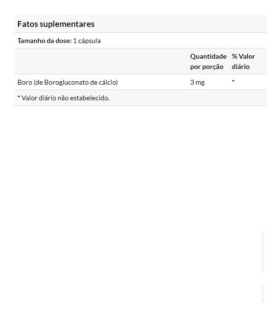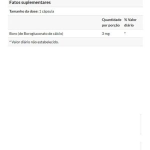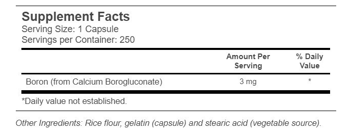 Contém 250 cápsulas de 3 mg de Boro de Qualidade Patenteada Albion.