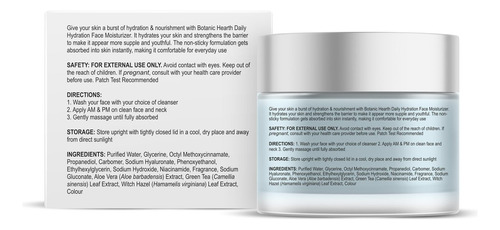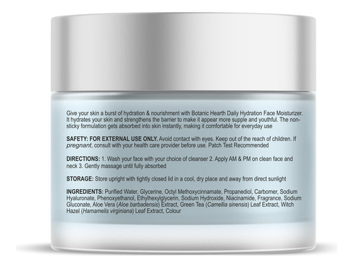 Hidratante diário Botanic Hearth com ácido hialurônico e extrato de chá verde Para todos os tipos de pele 100g de hidratação de