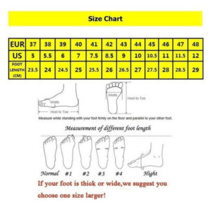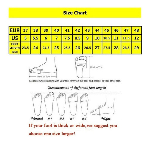 Somos de tamanho padrão europeu, escolha o tamanho certo para seus pés se você estiver confuso sobre o tamanho: Se seus pés forem mais grossos ou mais selvagens, escolha um tamanho maior: