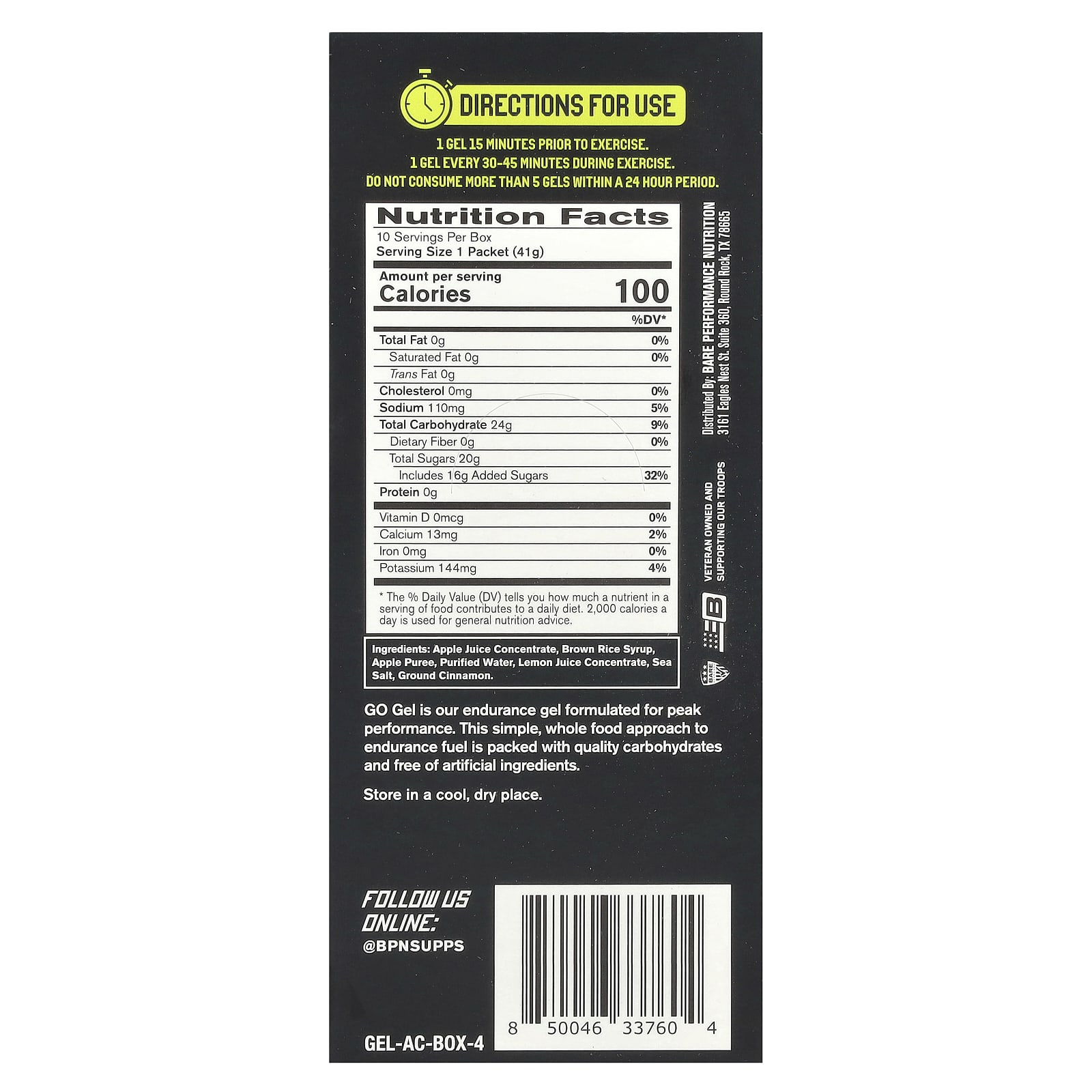 BPN Go Gel Gel de Resistência Maçã e Canela 10 Embalagens 41 g (145 oz) Cada – BPN Nutrição Esportiva Suplementos Esportivos.