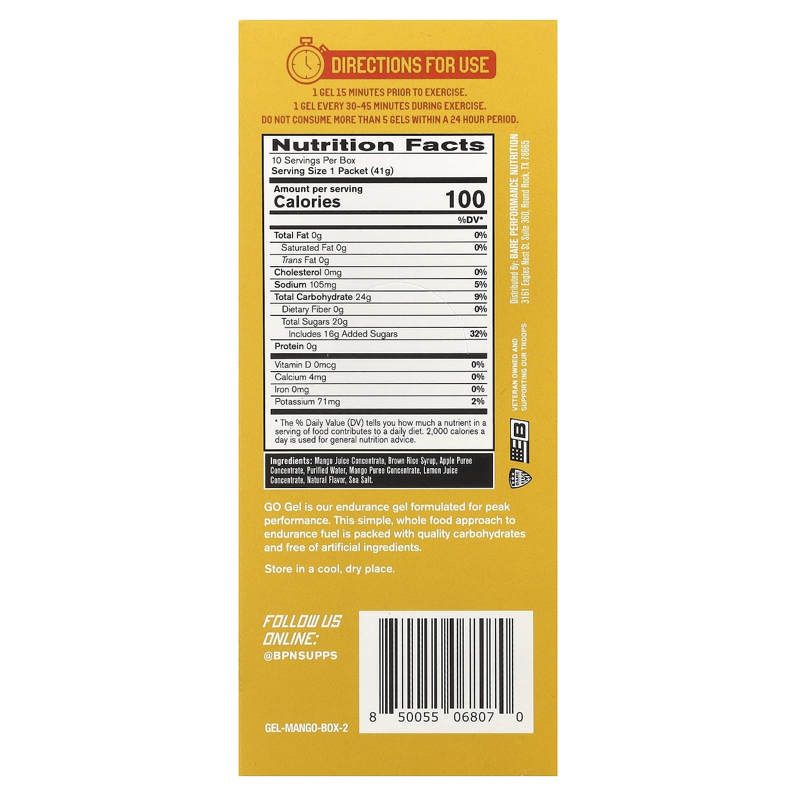 BPN Go Gel Gel de Resistência Manga 10 Embalagens 41 g (145 oz) Cada – BPN Nutrição Esportiva Suplementos Esportivos.