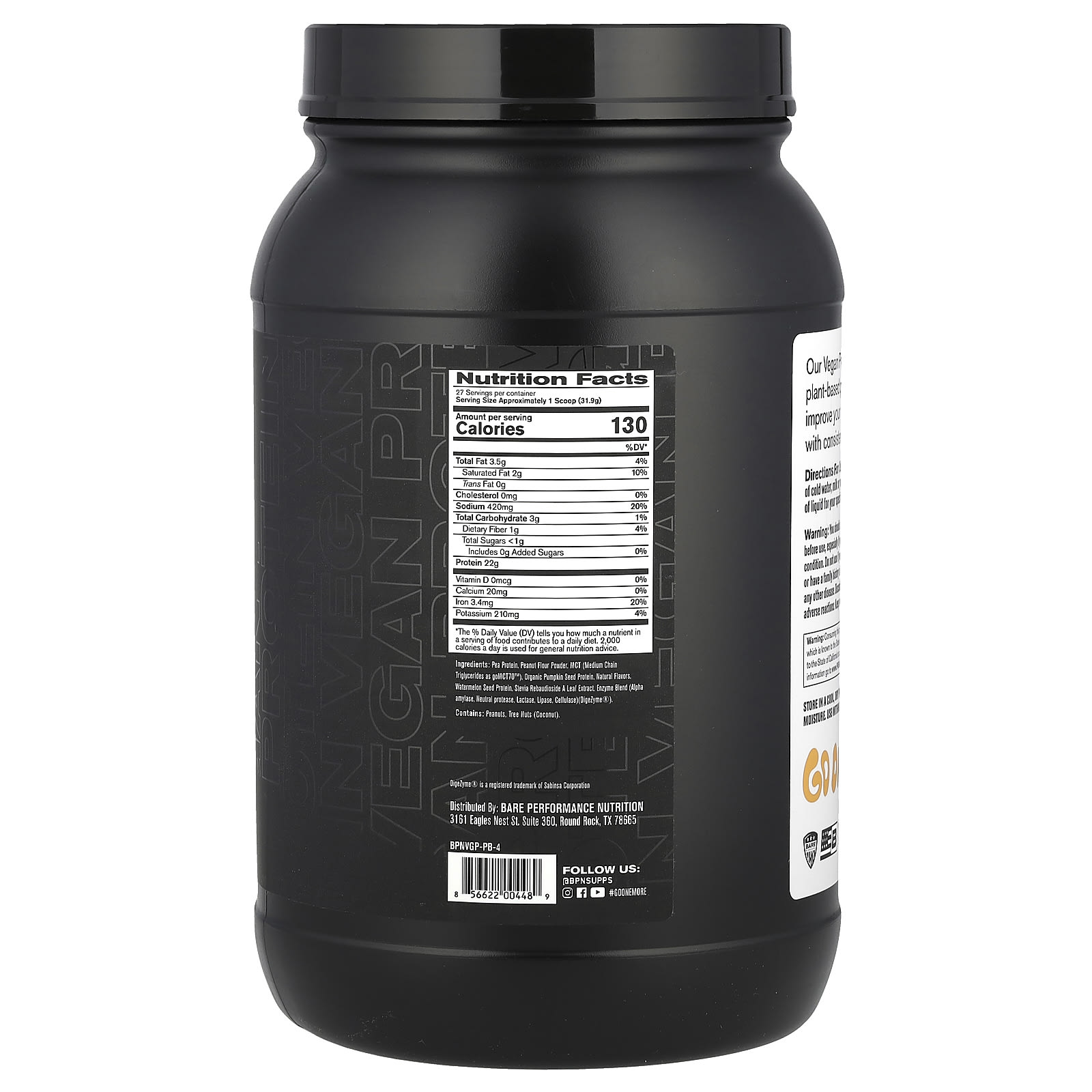 BPN Proteína Vegana Biscoito de Manteiga de Amendoim 861 g (1 lb 144 oz) – BPN Nutrição Esportiva Proteína Proteína Vegetal.