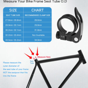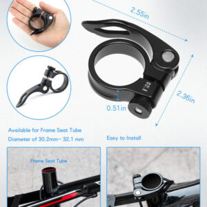 DESCRIÇÃO DO PRODUTO Quantidade: 2 unidades Cor: preto Material do produto: alumínio 6061 Peso bruto: 2,61 onças Peso líquido: 1,3 onças Tamanho do produto: 2,55 x 2,363 x 0,51 pol. Tamanho da embalagem: 5,51 x 3,54 x 0,55 pol. – Material de alta qualidade Nosso grampo de assento de bicicleta é feito de alumínio 6061, leve e durável, confortável e seguro. – Amplamente utilizado Adequado para uso interno e externo, mountain bike, bicicleta coberta, bicicleta de trilha podem ser usadas. Confirme antes de fazer o pedido. Esta braçadeira de assento de bicicleta pode ser instalada em seu assento de bicicleta. – Fácil de instalar. Solução de baixo custo, permite que você se sente mais confortável, permite que você ande mais suave, tenha um bom humor. – Compatível com vários tamanhos O diâmetro interno da braçadeira do assento é de 31,8 mm, adequado para tubos de assentamento de 27,2/28,6 mm de diâmetro – Design exclusivo Os clipes de bicicleta têm design de trava de liberação rápida e desmontagem rápida, tornando a condução mais confortável, estável e segura.