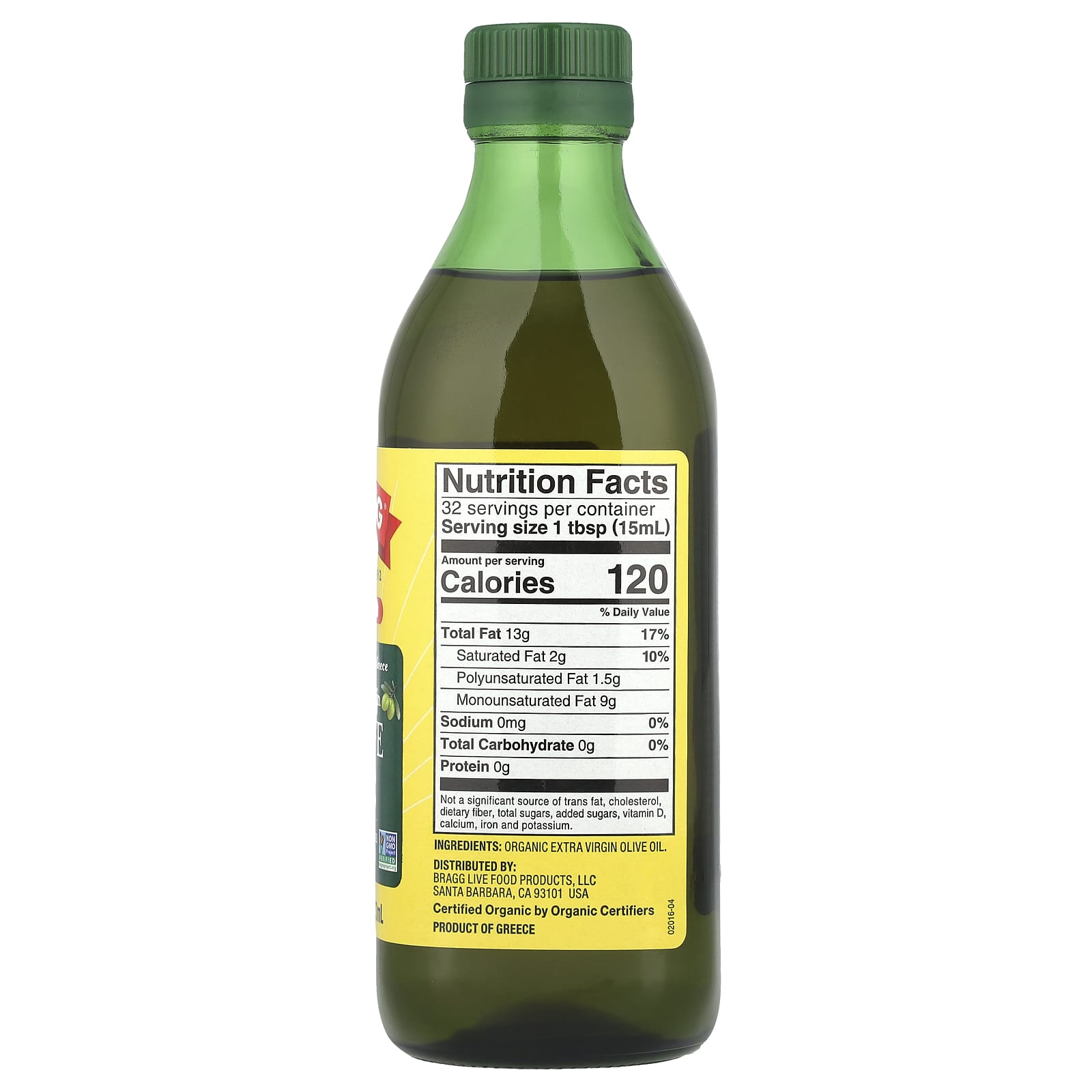 Bragg Óleo de Oliva Extravirgem Orgânico 473 ml (16 fl oz) – Bragg Alimentos Óleos e vinagres Azeite de Oliva.
