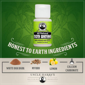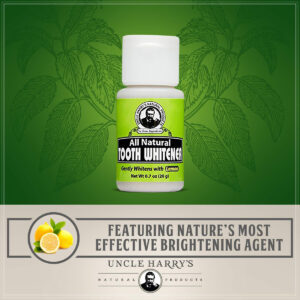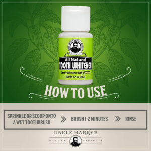 A casca de limão é um poderoso clareador dental que contém tanto um adstringente quanto uma vitamina C. O adstringente ajuda na remoção de manchas superficiais, enquanto a vitamina C limpa a placa bacteriana. Este branqueador de dentes é ótimo para uso diário para ajudar a manter dentes brancos e saudáveis. – ORAL HEALTH HERO Salve seus dentes e gengivas com o pó dental Uncle Harry. Nossa pasta concentrada em pó estimula um esmalte dentário mais saudável ao nutrir os dentes com cálcio, magnésio e fósforo. Também ajuda a manter um pH naturalmente alcalino que é melhor para a saúde bucal e a higiene dental. – CLAREAMENTO DENTÁRIO SIMPLES Este pó clareador para dentes é aprimorado com limão, o agente clareador mais eficaz da natureza. Suas qualidades adstringentes e altos níveis de vitamina C ajudam a clarear os dentes e eliminar o acúmulo na boca. – FRESH BREATH Contém uma mistura de ervas botânicas, incluindo casca de carvalho branco, mirra e casca de limão para iluminar a superfície do dente e revitalizar a aparência das gengivas. – HIGIENE SIMPLES Para usar, basta polvilhar, colher ou mergulhar no frasco com uma escova de dentes úmida, escovar e enxaguar. Enxágue bem. Para obter melhores resultados, primeiro escove com o creme dental Uncle Harrys e depois o clareamento com pó de remineralização. – LIMPOS E DE QUALIDADE Os remédios bucais da Uncle Harry são orgulhosamente sem SLS, sem glúten, sem glicerina e veganos para atender até mesmo às necessidades dentárias mais sensíveis e conscientes. Nossos produtos de pasta de dente 100% natural também são feitos sem conservantes sintéticos, como agentes espumantes, cores, sabores artificiais ou bicarbonato de sódio.