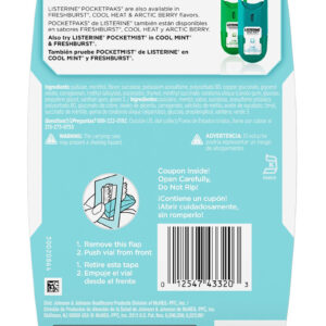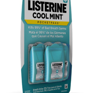 Tiras de hálito portáteis Listerine Cool Mint PocketPaks para mau hálito, tiras de hálito fresco para matar 99% dos germes do mau hálito* Em viagem, sabor fresco de menta, 72 unidades (pacote com 6) – Pacote com 6, 3 pacotes contendo 24 tiras de cada uma das tiras de mau hálito Listerine Cool Mint PocketPaks para matar germes de mau hálito de forma eficaz enquanto refrescam o hálito em qualquer lugar com um sabor fresco de menta – as tiras de hálito de menta matam 99 por cento de germes que causam mau hálito, de acordo com testes de laboratório, e deixam você com hálito fresco em ocasiões e reuniões importantes – Descubra o hálito fresco em um passo conveniente com um pacote portátil de tiras de purificador de hálito de menta. Essas tiras de hálito fresco de bolso se dissolvem instantaneamente para matar os germes que causam mau hálito, deixando sua boca limpa e revigorada. Obtenha proteção contra o mau hálito em qualquer lugar com essas tiras de hálito fresco de menta convenientemente portáteis. Perfeito para um hálito fresco de fácil acesso e para matar germes do mau hálito enquanto você estiver em qualquer lugar. Para usar, remova uma tira de higiene bucal da maleta de transporte conveniente, coloque-a na língua e deixe-a dissolver. Use conforme necessário para refrescar o hálito e matar os germes do mau hálito