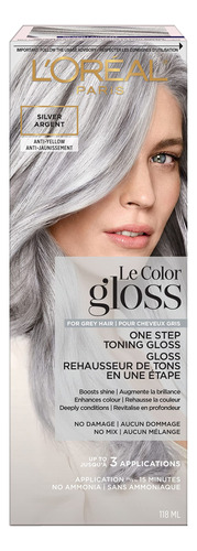 Brilho tonificante de cabelo L'Oreal Paris Le Color Gloss One Step no chuveiro, neutraliza o latão, condiciona e aumenta o brilho, prata, 4 onças – Brilho tonificante para cabelos grisalhos: melhore a cor e o tom do cabelo, neutralize e corrija o latão, aumente o brilho e condicione profundamente com este brilho tonificante de uma etapa que deixa o cabelo incrivelmente saudável, com um toque de cor fresco – Fácil aplicação: este tonificante de uma etapa o brilho é fácil de usar com apenas 1 tubo; sem necessidade de mistura e sem luvas, sem problemas com aplicação de até 15 minutos; dura cerca de 10 dias, até 3 aplicações em cada tubo — Fórmula vegana suave: contém uma base de condicionamento profundo com infusão de óleo de coco; vegano, sem cor, sem queratina e livre de amônia, parabenos, ftalatos, sulfatos e óleos minerais; use 1 vez por semana para manter o brilho e a cor — Cor de cabelo L'Oreal Paris: oferecemos tintura de cabelo permanente, semipermanente e temporária, além de cobertura radicular, toners e isqueiros antilatão sistemas de alisamento; cubra cabelos grisalhos, realce ou use cores vivas – L'Oreal Paris Beauty: uma empresa líder em cuidados de beleza completos com sede em Paris, oferecemos produtos inovadores e experiência única de especialistas em beleza em maquiagem, cuidados com a pele, cuidados com o cabelo, estilo e cor do cabelo