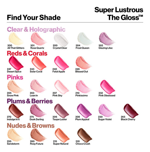 REVLON Super Lustrous Lipgloss é um gloss não pegajoso com brilho hidratante e um toque de cor pura. Ele condiciona e suaviza os lábios, ao mesmo tempo que fornece umidade brilhante e uma sensação macia e flexível. Disponível em 12 tons lindos, você pode aplicá-lo diretamente nos lábios para obter uma aparência de alto brilho ou aplicar uma camada sobre seu batom REVLON Super Lustrous favorito. A REVLON é líder global em cosméticos, cores de cabelo, fragrâncias, cuidados com a pele e produtos de beleza. Uma das franquias de marcas de consumo mais fortes do mundo, os produtos da REVLON são vendidos em mais de 100 países em seis continentes. A REVLON revitalizou a indústria ao longo dos anos com cores icônicas para unhas e lábios e com tecnologia inovadora, como batom e maquiagem resistentes à transferência ColorStay. Por REVLON