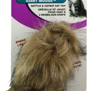 Rato gigante peludo de pelúcia com chocalho e erva-dos-gatos que seu gato vai adorar.
