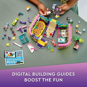Dê aos fãs de LEGO Friends horas de diversão com o divertido brinquedo Roller Disco Arcade (41708) para crianças de 7 anos ou mais. As crianças podem se imaginar saindo com os amigos na discoteca, se divertindo na pista de boliche e jogando fliperama. O modelo se abre para revelar 3 zonas de atividades divertidas. Com 3 personagens LEGO Friends – minibonecas Andrea, Evelyn e Jackson e muitos acessórios de brinquedo legais, como patins, pinos de boliche, telefone celular, bolsa de boliche, placar, bola e alfinetes, um sanduíche e um microfone, há possibilidades ilimitadas de contar histórias criativas de amizade. As crianças ajudam Andrea, amiga da LEGO, a calçar seus patins e sair com os amigos na discoteca. Eles podem enfrentar Evelyn no jogo de dança ou desafiar Jackson para uma batalha de hóquei aéreo. Depois, refresque-se depois de toda aquela atividade divertida com um refrigerante da máquina de venda automática. As minibonecas patinam quando as crianças giram a roda dentada, e as crianças também podem tocar DJ. O modelo tem um suporte para celular para que as crianças possam escolher a música para a discoteca. Além de um guia em papel, este conjunto vem com o Instructions PLUS. Disponível no aplicativo LEGO Building Instructions, ele inclui ferramentas de zoom, fantasma e rotação para ajudar as crianças a entender o processo de construção. Também permite que eles salvem seu progresso para que possam voltar à construção a qualquer momento. Este conjunto de brinquedos LEGO Friends é uma ótima ideia de presente de aniversário ou Natal para fãs de LEGO Friends e de discotecas com 7 anos ou mais. Quando aberto, este brinquedo de arcade mede mais de 5 pol. (14 cm) de altura, 14 pol. (38 cm) de largura e 6 pol. (17 cm) de profundidade. Contém 642 peças.