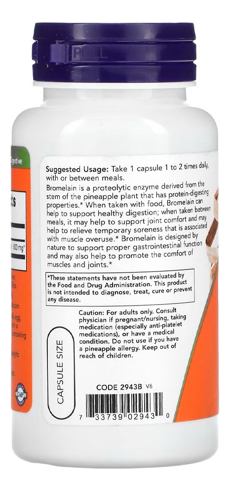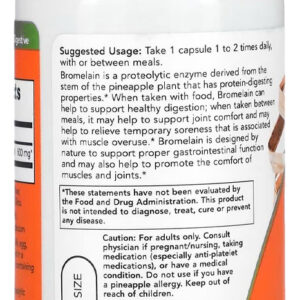 1. Principal Suporte: A Bromelaína da Now Foods, com 500mg por cápsula, é uma enzima natural derivada do abacaxi, oferecendo suporte nutricional especializado.