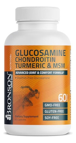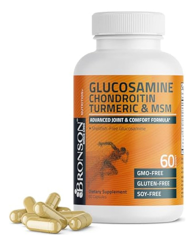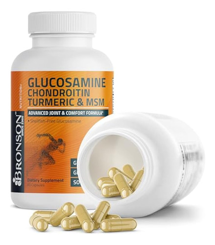 Bronson Glucosamina, Condroitina, Cúrcuma e MSM Fórmula Avançada para Articulações e Cartilagem – Suporta Articulações, Mobilidade e Cartilagem Saudáveis – Não OGM, 60 Cápsulas