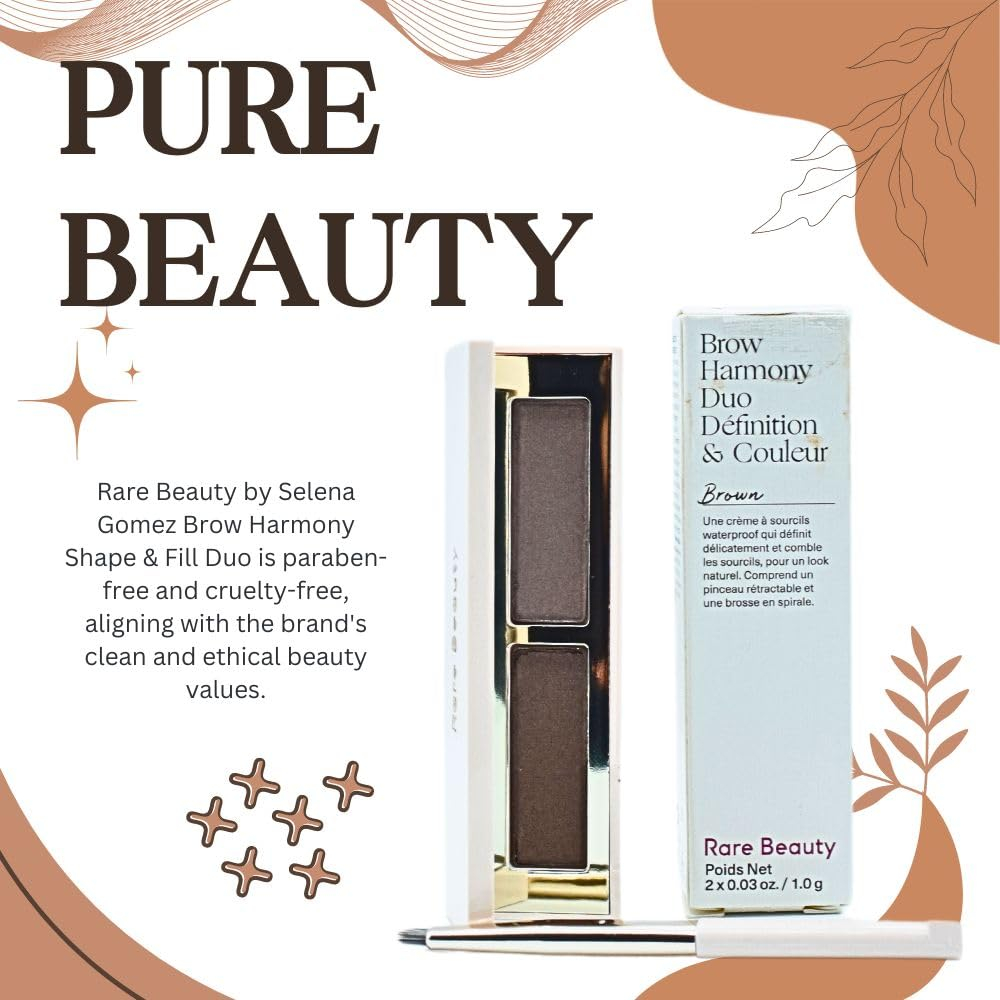 Rare Beauty de Selena Gomez Brow Harmony Shape & Fill Duo Liberte todo o potencial de suas sobrancelhas com o Duo Rare Beauty by Selena Gomez Brow Harmony Shape & Fill, uma revolução de sobrancelhas em todos os compactos. Essa dupla dinâmica, perfeitamente selecionada para cabelos castanhos médios a escuros, não é apenas maquiagem; é sua arma secreta para sobrancelhas que roubam os holofotes. Mergulhe em 2 x 0,03 oz. | 1,0 g de magia à prova d'água que esculpe e preenche com um acabamento retocado que desafia o tempo. Imagine um deslizamento cremoso que se transforma magicamente em um pó edificável, garantindo sobrancelhas tão ousadas quanto naturais. As tonalidades complementares imitam facilmente as nuances de suas sobrancelhas naturais, fornecendo um nível de profundidade e dimensão nada menos que fascinante. Mas isso não é tudo. Em um estudo com consumidores, 100% dos participantes elogiaram sua capacidade de preencher sobrancelhas esparsas naturalmente e ficar quieta sem nenhum indício de mancha ou transferência. Isso não é só maquiagem; é alquimia de sobrancelhas. E para uma aplicação perfeita, o aplicador embutido dois em um é seu ajudante confiável, definindo facilmente cada traçado. Prepare-se para abraçar sobrancelhas que desafiam as expectativas, porque a Rare Beauty é onde sua jornada de beleza se torna lendária. Eleve seu estilo de sobrancelhas e redefina sua história de beleza com este Brow Harmony Duo, porque suas sobrancelhas merecem nada menos do que extraordinário. – À prova de água: Rare Beauty de Selena Gomez Brow Harmony Shape & Fill Duo in Brown é uma massa para sobrancelhas à prova d'água que molda e preenche as sobrancelhas sem esforço para uma aparência natural e à prova de erros que dura o dia todo. – Aplicação cremosa, acabamento em pó: esta inovação a massa desliza sobre a forma cremosa, permitindo uma fácil aplicação, e proporciona um acabamento em pó ajustável sem qualquer precipitação de pó, proporcionando uma aparência instantaneamente mais completa e definida . – APARÊNCIA NATURAL: A dupla apresenta tons complementares que imitam os tons gradientes das sobrancelhas naturais, garantindo profundidade e dimensão para obter um resultado com aparência mais natural. – RESULTADOS CLINICAMENTE COMPROVADOS: Em um estudo com 72 pessoas, 100% disseram que essa dupla de sobrancelhas preenche sobrancelhas esparsas naturalmente, adere sem endurecer e 98% a consideraram à prova de manchas e resistente a transferências. – CLEAN BEAUTY: Rare Beauty, de Selena Gomez Brow Harmony Shape O & Fill Duo é livre de parabenos e livre de crueldade, refletindo o compromisso da marca com padrões de beleza limpos e éticos.
