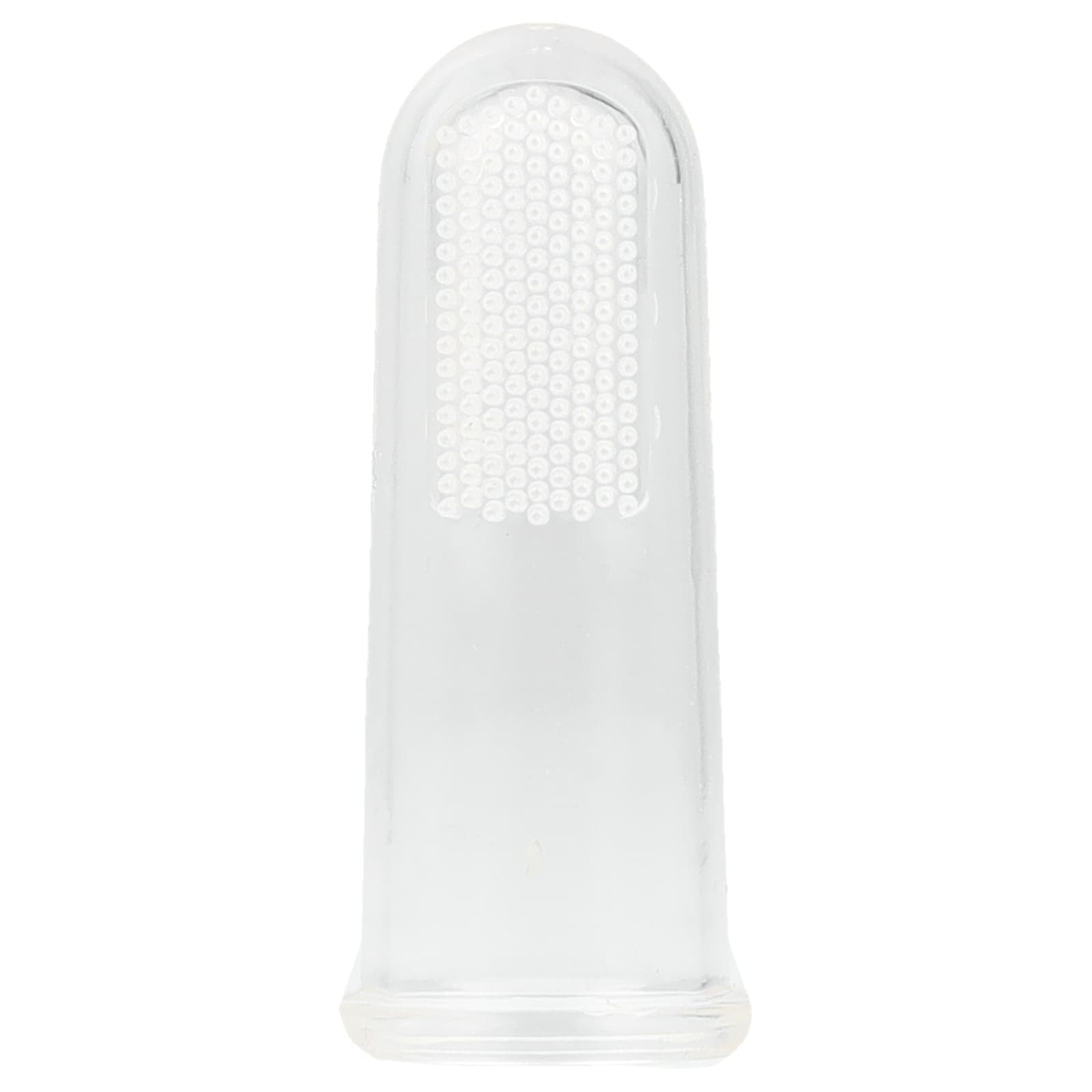 Coloque a “escova de dedo” confortavelmente no dedo. Não deixe o bebê sozinho com a escova.