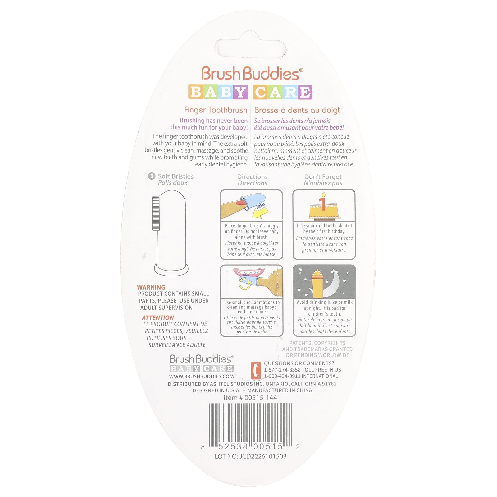 Brush Buddies Cuidados com o Bebê Escova de Dentes de Dedo Crianças de 0 a 3 Anos Escova de Dentes de 1 Dedo – Brush Buddies Bebês e Crianças Higiene Bucal Escovas de Dente para Bebês e Crianças.
