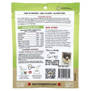 Cada colher medidora produz 1 xícara de Caldo de Vegetais líquido. O caldo desidratado pode ser usado como cobertura de alimentos úmidos ou secos. Sirva 1/4 de xícara de caldo de ossos hidratado por cada 25 libras de peso corporal por refeição. Refrigere a porção não utilizada de caldo de ossos hidratado por até 7 dias. Este produto destina-se apenas à alimentação intermitente ou suplementar. Não se destina a cadelas grávidas ou lactantes.