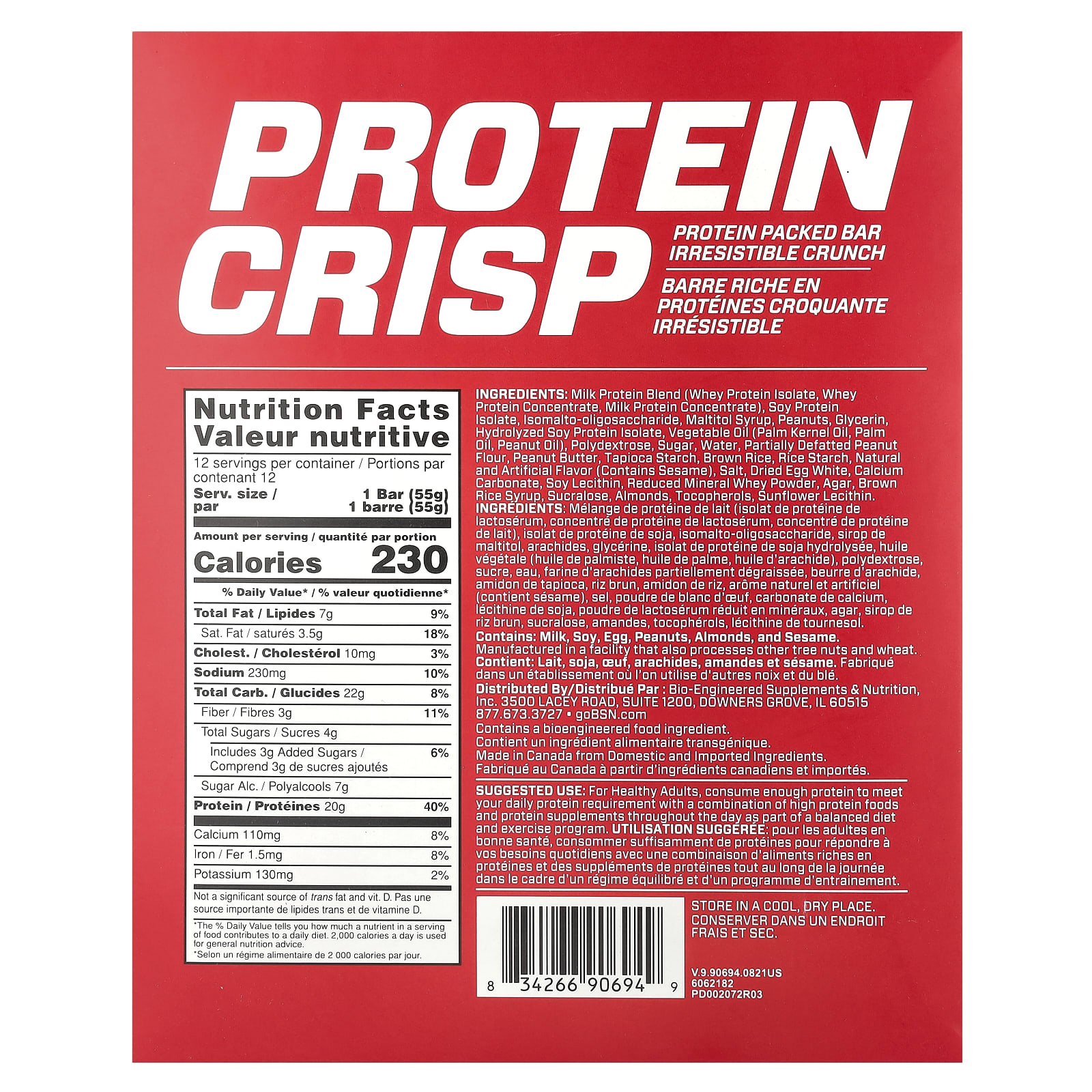 Rebentar na sala de musculação não significa punir suas papilas gustativas durante a recuperação. Recompensa-se com a Barra Protein Crisp da BSN, uma combinação séria de sabor incrível e textura única sem comprometer seus macros. Com apenas 230 calorias, cada Barra Protein Crisp contém 20 g de proteínas premium e 4 g de açúcar ou menos. E com uma textura leve e crocante e repleta do sabor clássico em cada crocância, todos os dias serão com o mesmo sabor. Saboreie vários sabores deliciosos para preparar um lanche ultraprático e repleto de proteínas entre as refeições, após o treino ou sempre que sentir vontade de comer algo em qualquer lugar. Você ganhou.
