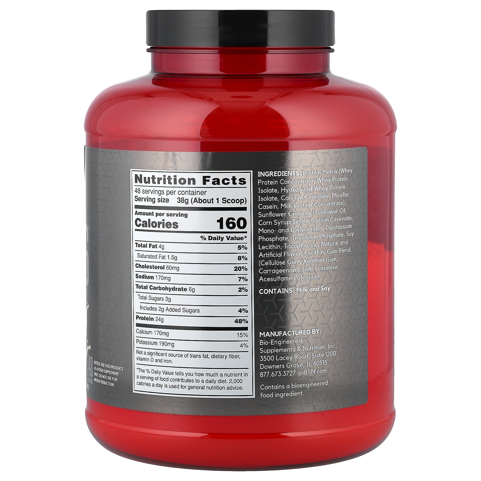 Matriz de proteína (concentrado de proteína whey, isolado de whey protein, isolado de proteína whey hidrolisada, caseinato de cálcio, caseína micelar, concentrado proteico de leite), creme de girassol em pó (óleo de girassol, partes sólidas de xarope de milho, caseinato de sódio, monoglicerídeos e diglicerídeos, fosfato de potássio dibásico, tricalcium phosphate, lecitina de soja, tocoferóis), sabores naturais e artificiais, lecitina, mistura de gomas (gomas de celulose, goma xantana, carragenina), sal, sucralose, acessulfamo potássico.