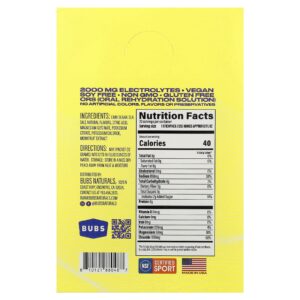 BUBS Naturals Hydrate or Die® Mistura para Bebida de Eletrólitos Limão 20 Embalagens 121 g (043 oz) Cada – BUBS Naturals Nutrição Esportiva Hidratação e Eletrólitos.