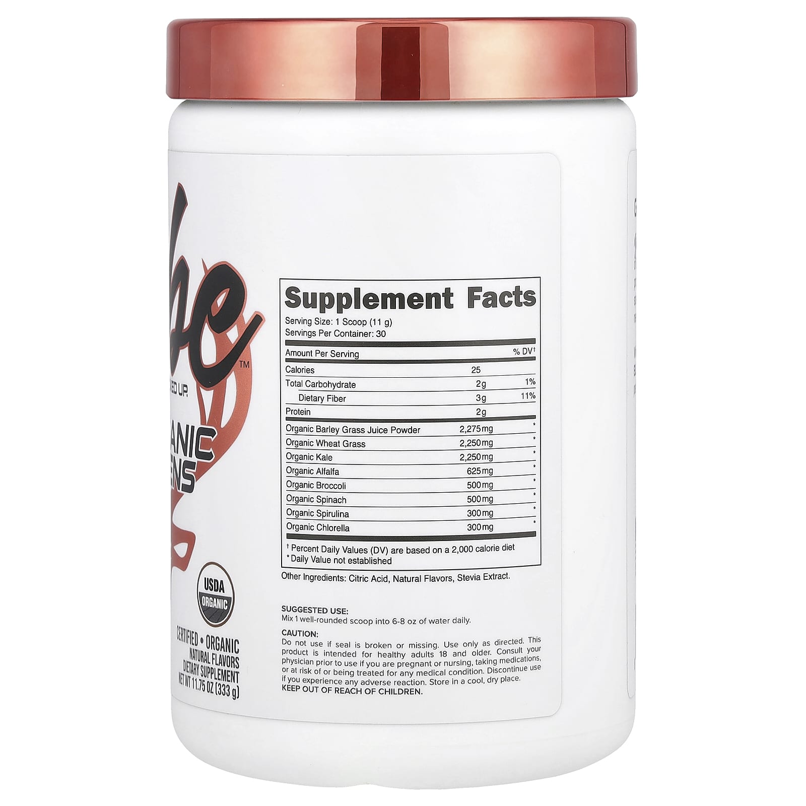 | Suco em Pó de Grama de Cevada Orgânica | 2.275 mg | * |