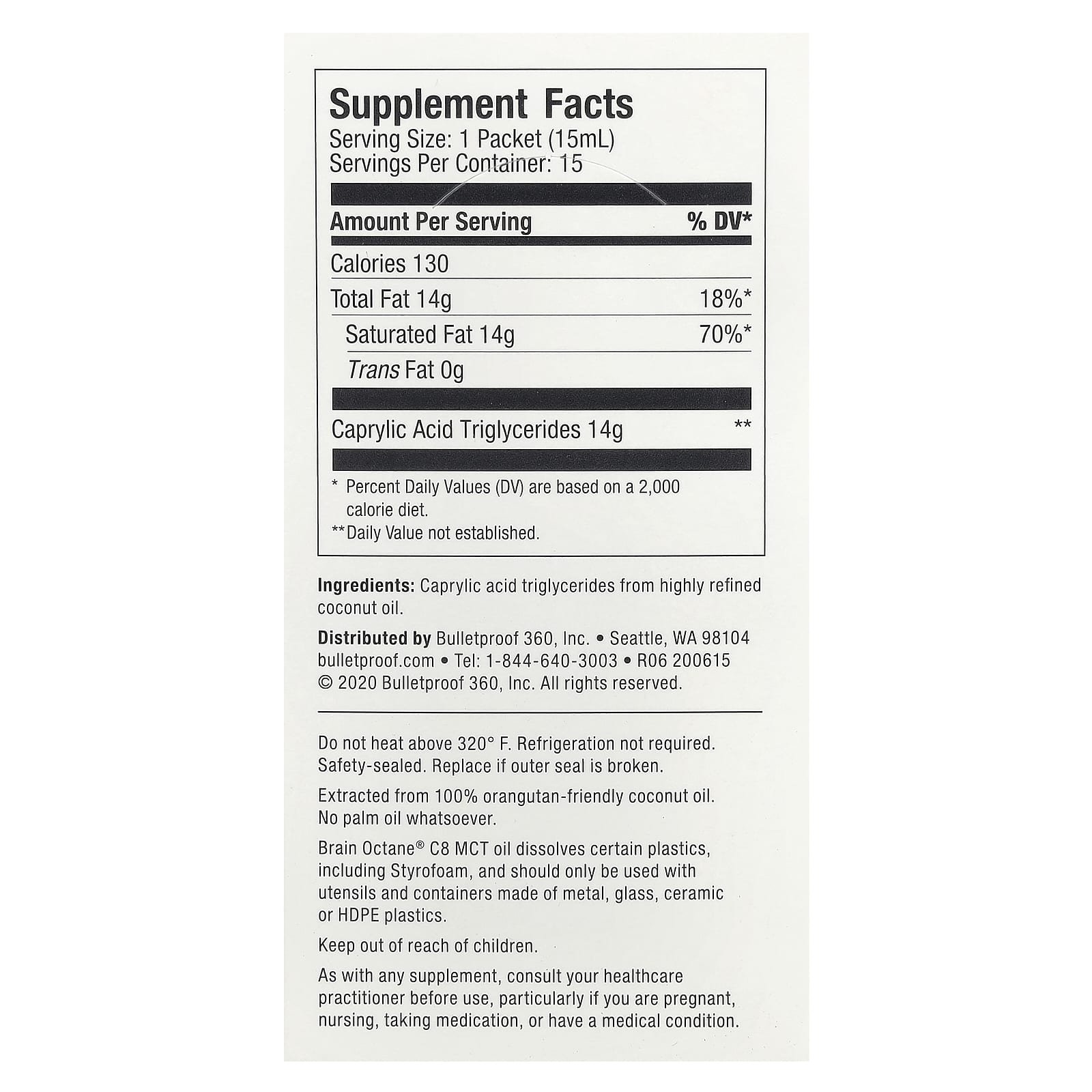 BulletProof Óleo TCM C8 Brain Octane® 15 Embalagens 15 ml (05 fl oz) Cada – BulletProof Suplementos Controle de peso Óleo de TCM e Ácido Caprílico.