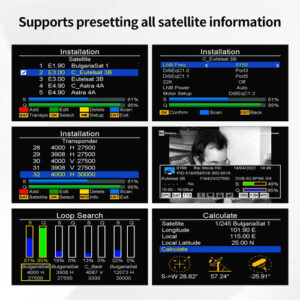 —-Análise avançada de sinal (compatibilidade com DVB – S2X/S2/S e MPEG – 4): Analisador de espectro, medição da força/qualidade do sinal e cálculo automático do ângulo (AZ/EL) para alinhamento satelital preciso.