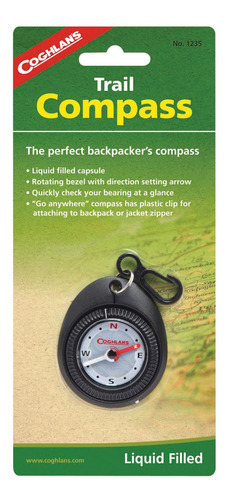 Coghlans Trail Compass – Quickly check your bearings at a glance with compact liquid-filled compass; plastic clip for attaching to backpack or jacket – Rotating bezel with direction-setting arrow – Affordable, essential gear for camping, backpacking, backcountry treks, and more