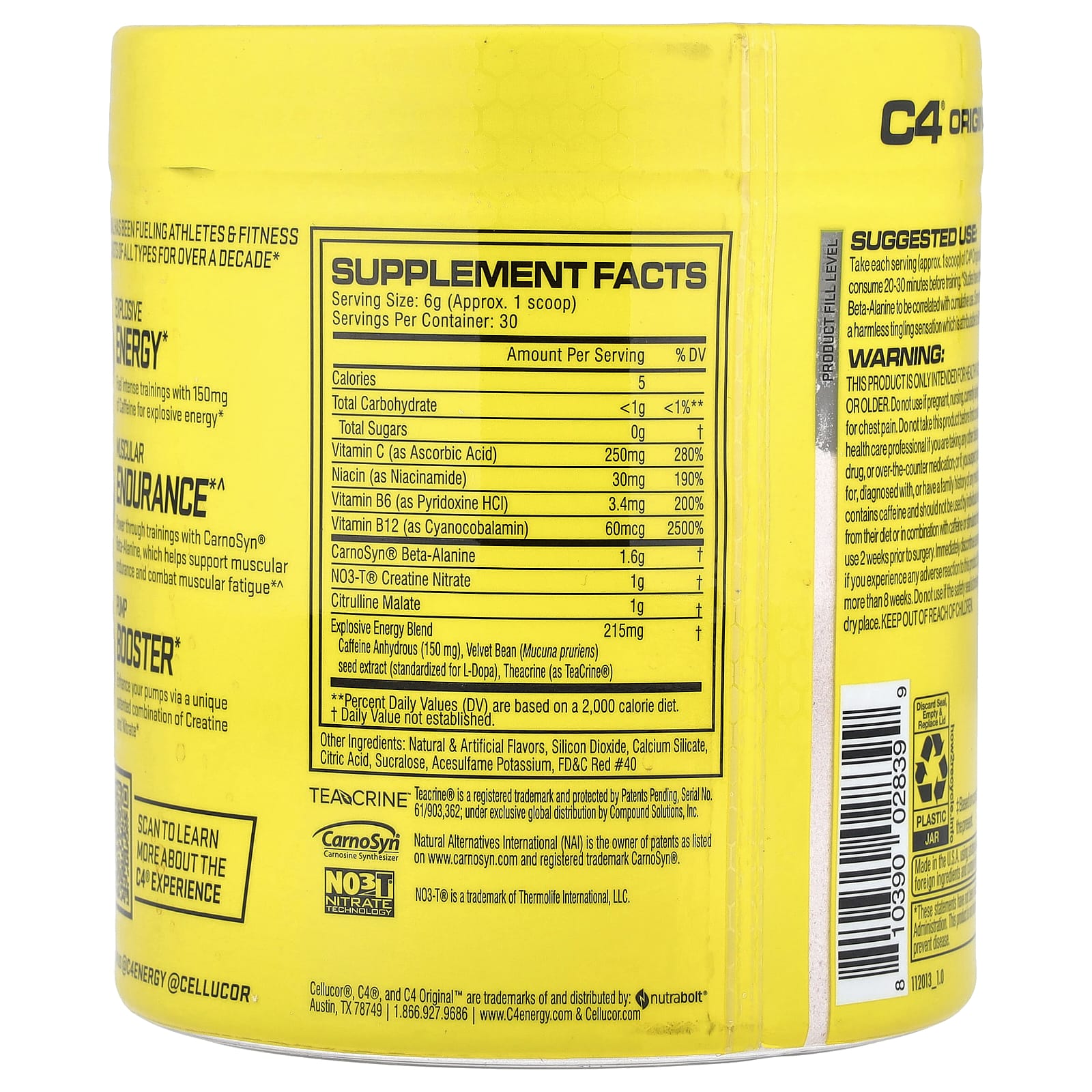 Tome cada porção (aprox. 1 colher medidora) de C4® Original com 6 fl. oz. de água e consuma de 20 a 30 minutos antes do treino.