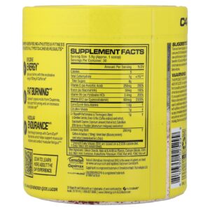 Este produto é destinado a adultos saudáveis com mais de 18 anos. Não use se estiver grávida ou amamentando. Não tome este produto antes de consultar um profissional de saúde qualificado se estiver tomando qualquer outro suplemento, medicamento prescrito ou sem receita, ou se você suspeita que tem ou foi tratado, diagnosticado ou tem histórico familiar de qualquer problema de saúde. Este produto contém cafeína e não deve ser usado por pessoas que desejam eliminar a cafeína da dieta nem em combinação com cafeína ou estimulantes de outras fontes. Interrompa o uso 2 semanas antes de qualquer cirurgia. Descontinue imediatamente o uso e fale com um médico se tiver qualquer reação adversa a este produto. Não use se o lacre de segurança estiver rompido ou faltando. Armazene em local fresco e seco. Mantenha fora do alcance de crianças.