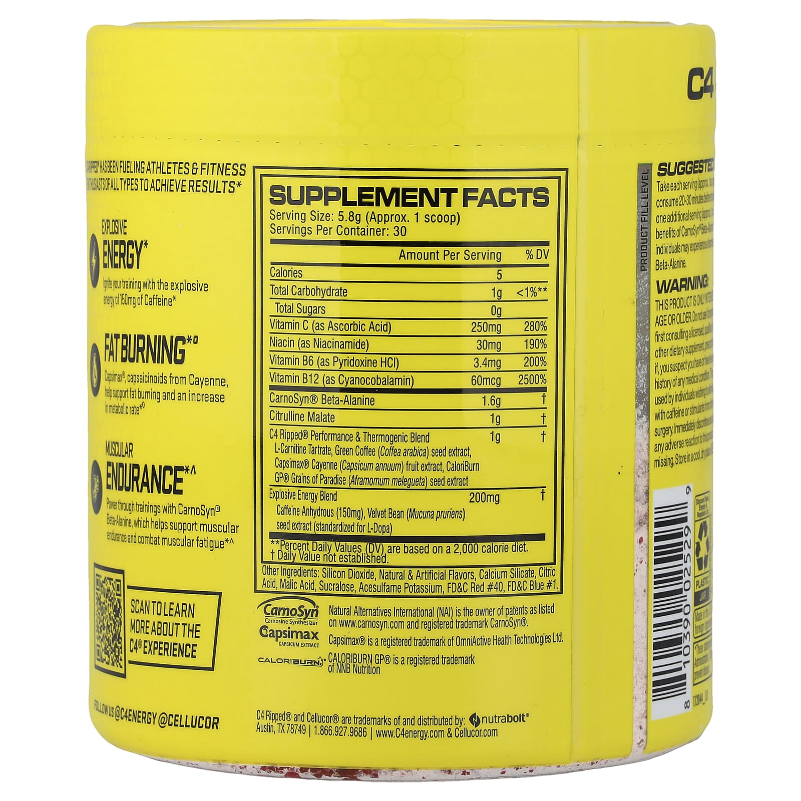 C4 / Cellucor C4 Ripped® Pré-treino Limonada de Framboesa 174 g (61 oz) – C4 / Cellucor Nutrição Esportiva Suplementos Pré-treino Pré-treino estimulante Cafeína.
