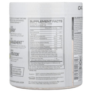 Este produto destina-se apenas a adultos saudáveis, com 18 anos de idade ou mais. Não use se estiver grávida ou amamentando. Não tome este produto antes de consultar um profissional de saúde qualificado se estiver tomando qualquer outro suplemento, medicamento prescrito ou sem receita; ou se você suspeita que tem ou foi tratado, diagnosticado ou tem histórico familiar de qualquer problema de saúde. Este produto contém cafeína e não deve ser usado por pessoas que desejam eliminar a cafeína da dieta nem em combinação com cafeína ou estimulantes de outras fontes. Interrompa o uso 2 semanas antes da cirurgia. Descontinue imediatamente o uso e fale com um médico se tiver qualquer reação adversa a este produto. Não use se o lacre de segurança estiver rompido ou faltando. Armazene em local fresco e seco. Mantenha fora do alcance de crianças.