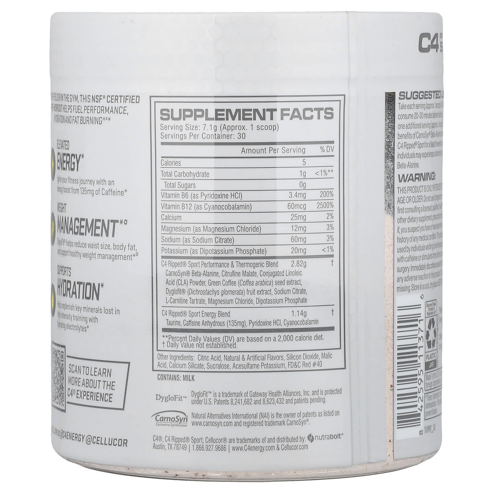 Tome cada dose (aprox. 1 colher medidora) de C4 Ripped® Sport, com 8 fl. oz. de água e consuma 20 a 30 minutos antes do treino. Assim que a tolerância for avaliada, tome uma porção adicional (aprox. 1 colher medidora) antes do treino.