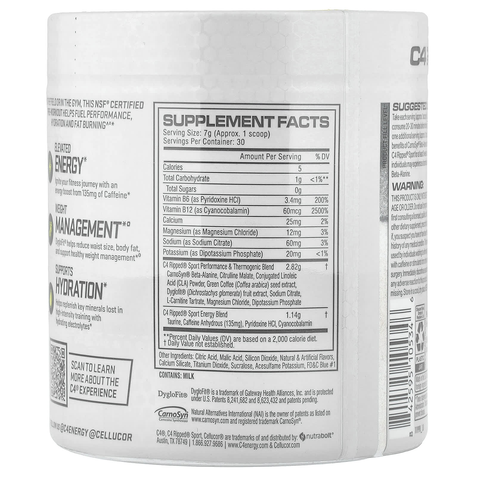 C4 / Cellucor C4 Ripped® Sport Pré-Treino Refrescância 210 g (74 oz) – C4 / Cellucor Nutrição Esportiva Suplementos Pré-treino Pré-treino estimulante Cafeína.