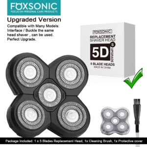 Cabeças de reposição de barbeador de cabeça FOXSONIC de 5 lâminas de alta qualidade para muitas marcas principais. Lâminas de barbear masculinas carecas – Cabeças de reposição de 5 cabeças Substituto perfeito para alto desempenho, compatível com muitos modelos: Interface/Fivela, o mesmo barbeador de cabeça, pode ser usado. —- X: Não compatível com o barbeador de caveiras de pit bull. – Com Blade Cover & Brush FOXSONIC, é compatível com muitas marcas. Lâminas de reposição de barbeador FOXSONIC de 5 lâminas para barbeador de cabeça Marca FOXSONIC Cabeças de reposição universais de barbeadores de cabeça marcas de barbeadores convencionais compatíveis, mesma interface de baioneta, podem ser usadas. – Cabeça de reposição WAHFOX compatível com as marcas: Wykla**, SHPAVV** Handsomem**, AidallSwell**, Vifyci* Kibi*, Huinnethr** ASave*, Aroama*, Rozia*, Roziap**, Roziahom*, Everfu*, Vsmoot*, Orihe*, WOOPOW**, Tillea*, Paitre*, SEFO*, Telfu* Zumy*, YEMIUG*, SKE*, Upmor*, MANL*, Asome*, ELECTRFIR*, GOOGLEE*, CHI*. Dicas: Qualquer marca mencionada acima, basta mostrar a compatibilidade e, para referência, nossa marca é WAHFOX/FOXSONIC. – Cabeças de reposição de barbeadores de cabeça de alta qualidade da série Super Octoups Professional Factory com 5 cabeças de lâmina, superfície de contato maior e barbear mais rápido. Ofereça um processo de barbear mais rápido e limpo. Fácil de usar, basta encaixar e barbear. Lavável, fácil de limpar. – O barbeador elétrico masculino Foxsonic de 5 cabeças e 5 lâminas possui superfícies especiais de galvanoplastia para lâminas de aço inoxidável hipoalergênicas de anel duplo e antiabrasão. Suas cabeças flutuantes flexíveis 5D giram para seguir os contornos do rosto, cabeça, pescoço e mandíbula, oferecendo um corte mais próximo e limpo, sem irritar a pele. – Tecnologia de afiação automática Os cortadores de barbear com tecnologia de afiação automática não arrancam a barba durante o barbear. Prezados clientes: Obrigado por adquirir nossos produtos. Se você tiver algum problema ou sugestão, entre em contato comigo a qualquer momento. Atenciosamente, EQUIPE DE VENDAS DA FOXSONIC US – Prezados clientes: Obrigado por adquirir nossos produtos. Se você tiver algum problema ou sugestão, entre em contato comigo a qualquer momento. Atenciosamente, EQUIPE DE VENDAS DA FOXSONIC US